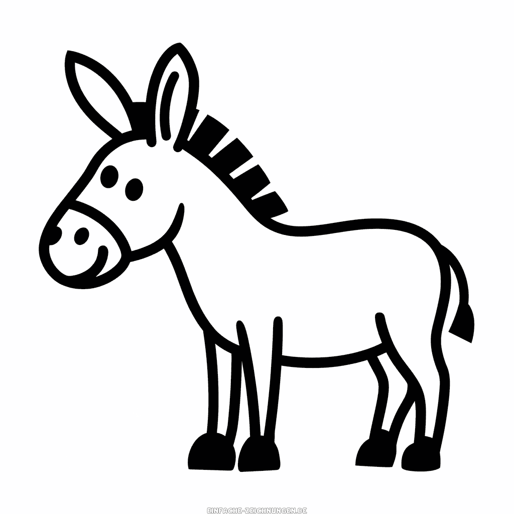 Einfache Zeichnung von Einfachem Esel kostenlos zum Ausdrucken, dieser niedliche Esel ist perfekt für kleine Tierfreunde, die das Zeichnen lieben. Einfaches Ausmalbild zum Nachzeichnen oder Ausmalen für Kinder. Hochauflösendes Bild, ideal für den schwarz-weißen PDF-Druck im A4-Format.