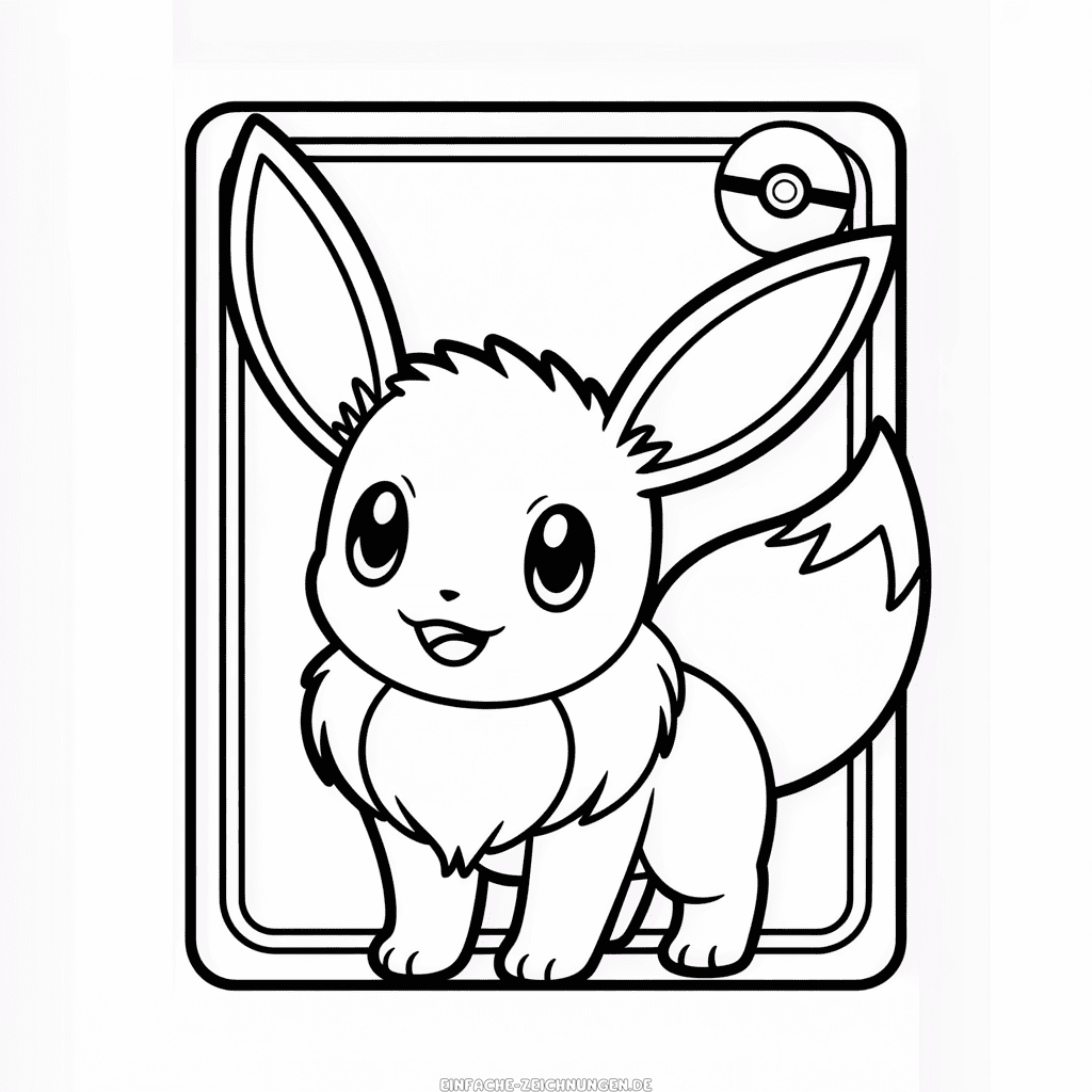 Einfache Zeichnung von Evoli Pokémon Karte kostenlos zum Ausdrucken, zeigt das beliebte Pokémon in einer niedlichen Darstellungsform. Einfaches Ausmalbild zum Nachzeichnen oder Ausmalen für Kinder. Hochauflösendes Bild, ideal für den schwarz-weißen PDF-Druck im A4-Format.