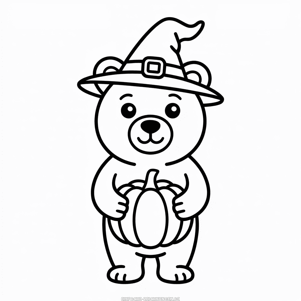 Einfache Zeichnung von Halloween Bär kostenlos zum Ausdrucken, ein niedlicher Bär in einem Halloween-Kostüm sorgt für gruselig süßen Malspaß. Einfaches Ausmalbild zum Nachzeichnen oder Ausmalen für Kinder. Hochauflösendes Bild, ideal für den schwarz-weißen PDF-Druck im A4-Format.