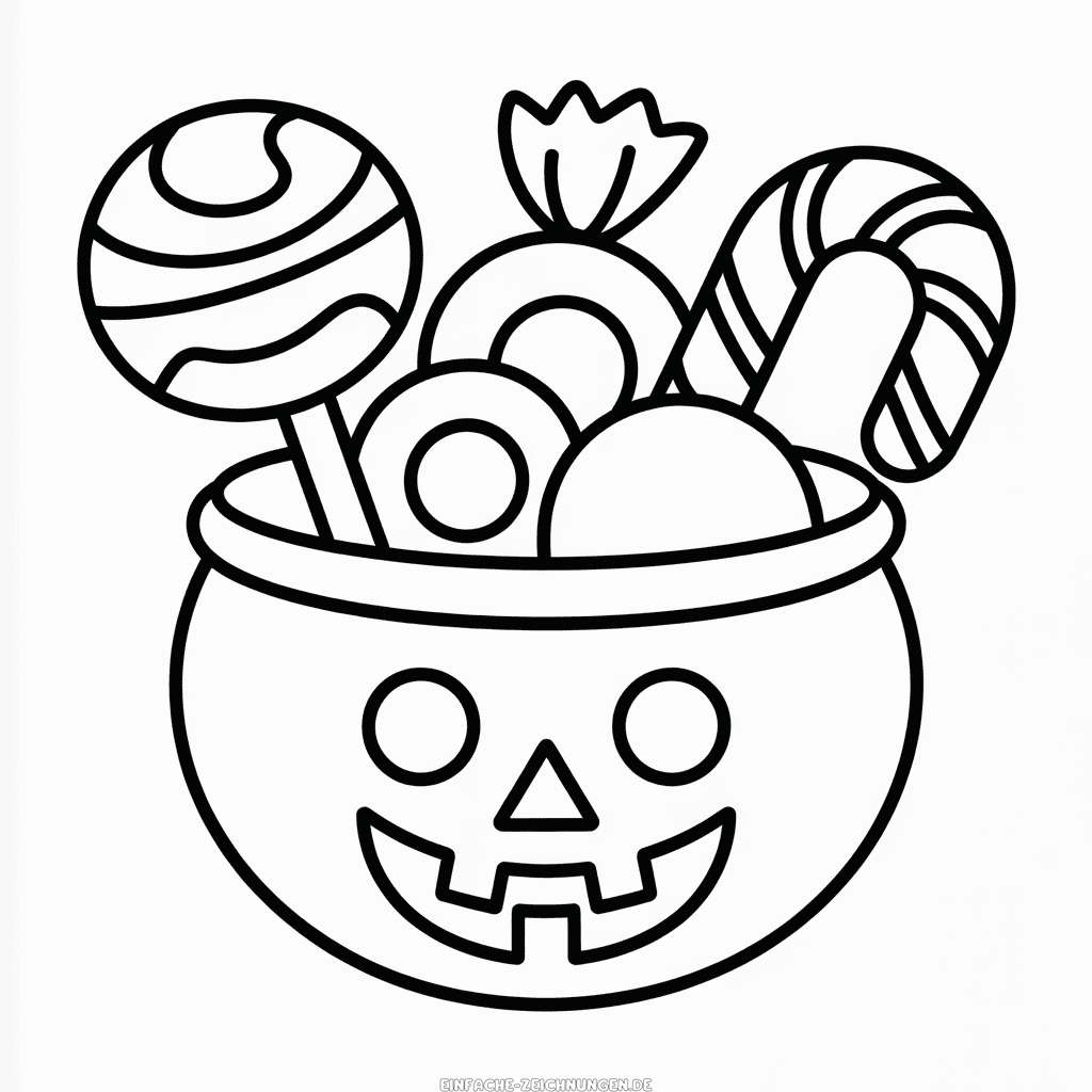 Einfache Zeichnung von Halloween Korb kostenlos zum Ausdrucken, ein gruselig-lustiger Korb voller Halloween-Süßigkeiten und Kürbisse wartet darauf, von kleinen Künstlern entdeckt zu werden. Einfaches Ausmalbild zum Nachzeichnen oder Ausmalen für Kinder. Hochauflösendes Bild, ideal für den schwarz-weißen PDF-Druck im A4-Format.