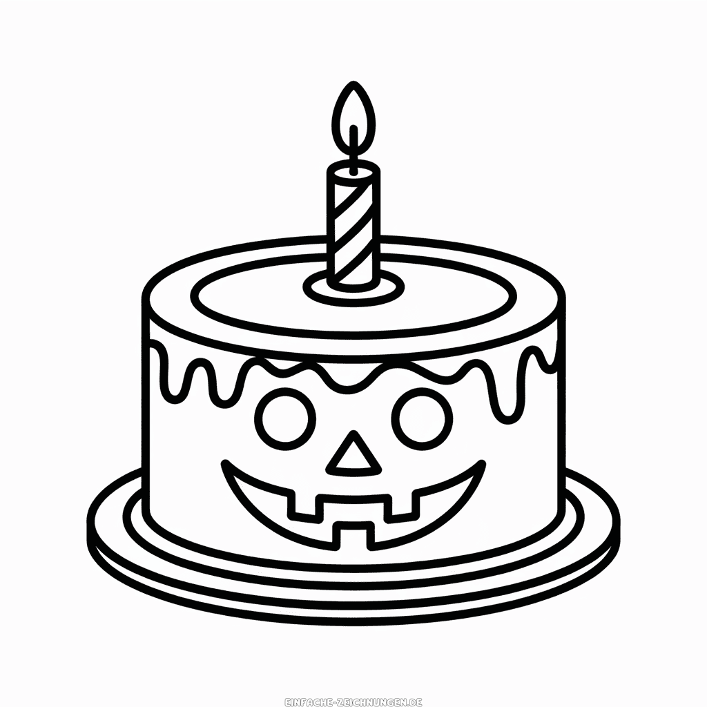 Einfache Zeichnung von Halloween-Kuchen kostenlos zum Ausdrucken, ein niedlicher Halloween-Kuchen mit lustigen Details wartet darauf, von kleinen Künstlern entdeckt zu werden. Einfaches Ausmalbild zum Nachzeichnen oder Ausmalen für Kinder. Hochauflösendes Bild, ideal für den schwarz-weißen PDF-Druck im A4-Format.