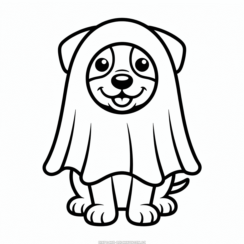 Einfache Zeichnung von Hund im Halloween-Kostüm kostenlos zum Ausdrucken, dieses freundliche Hundemotiv in einem lustigen Halloween-Kostüm lädt Kinder zum fröhlichen Ausmalen ein. Einfaches Ausmalbild zum Nachzeichnen oder Ausmalen für Kinder. Hochauflösendes Bild, ideal für den schwarz-weißen PDF-Druck im A4-Format.