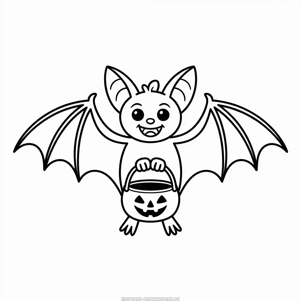 Einfache Zeichnung von Niedliche Fledermaus Halloween kostenlos zum Ausdrucken, eine liebenswerte kleine Fledermaus in ihrem lustigen Halloween-Kostüm. Einfaches Ausmalbild zum Nachzeichnen oder Ausmalen für Kinder. Hochauflösendes Bild, ideal für den schwarz-weißen PDF-Druck im A4-Format.