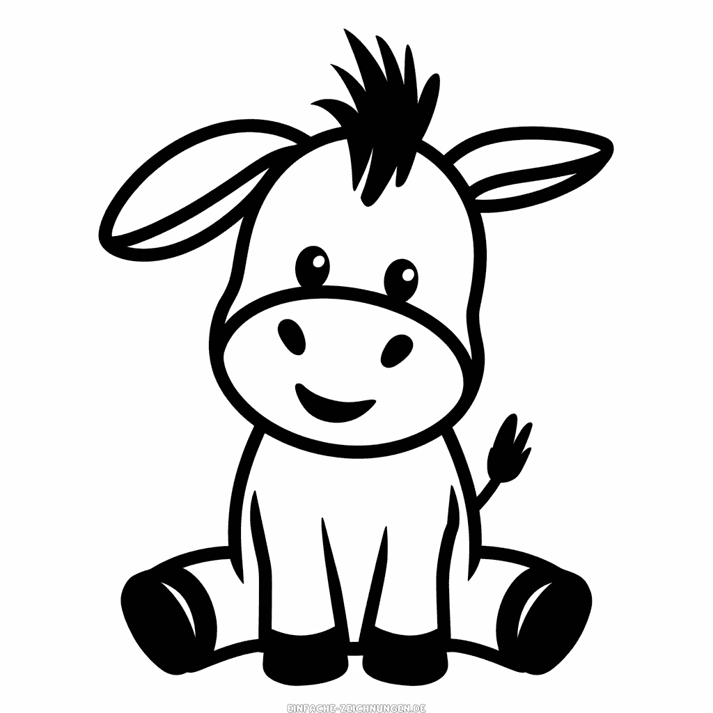 Einfache Zeichnung von Niedlicher Esel kostenlos zum Ausdrucken, ein fröhlicher kleiner Esel mit großen Ohren wartet darauf, von dir gezeichnet oder ausgemalt zu werden. Einfaches Ausmalbild zum Nachzeichnen oder Ausmalen für Kinder. Hochauflösendes Bild, ideal für den schwarz-weißen PDF-Druck im A4-Format.