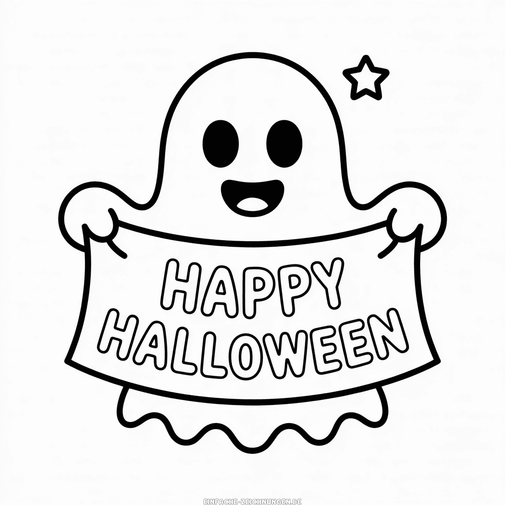 Einfache Zeichnung von niedliches fröhliches Halloween kostenlos zum Ausdrucken, eine fröhliche Halloween-Szene mit lachenden Kürbissen und freundlichen Gespenstern sorgt für Spaß beim Ausmalen. Einfaches Ausmalbild zum Nachzeichnen oder Ausmalen für Kinder. Hochauflösendes Bild, ideal für den schwarz-weißen PDF-Druck im A4-Format.