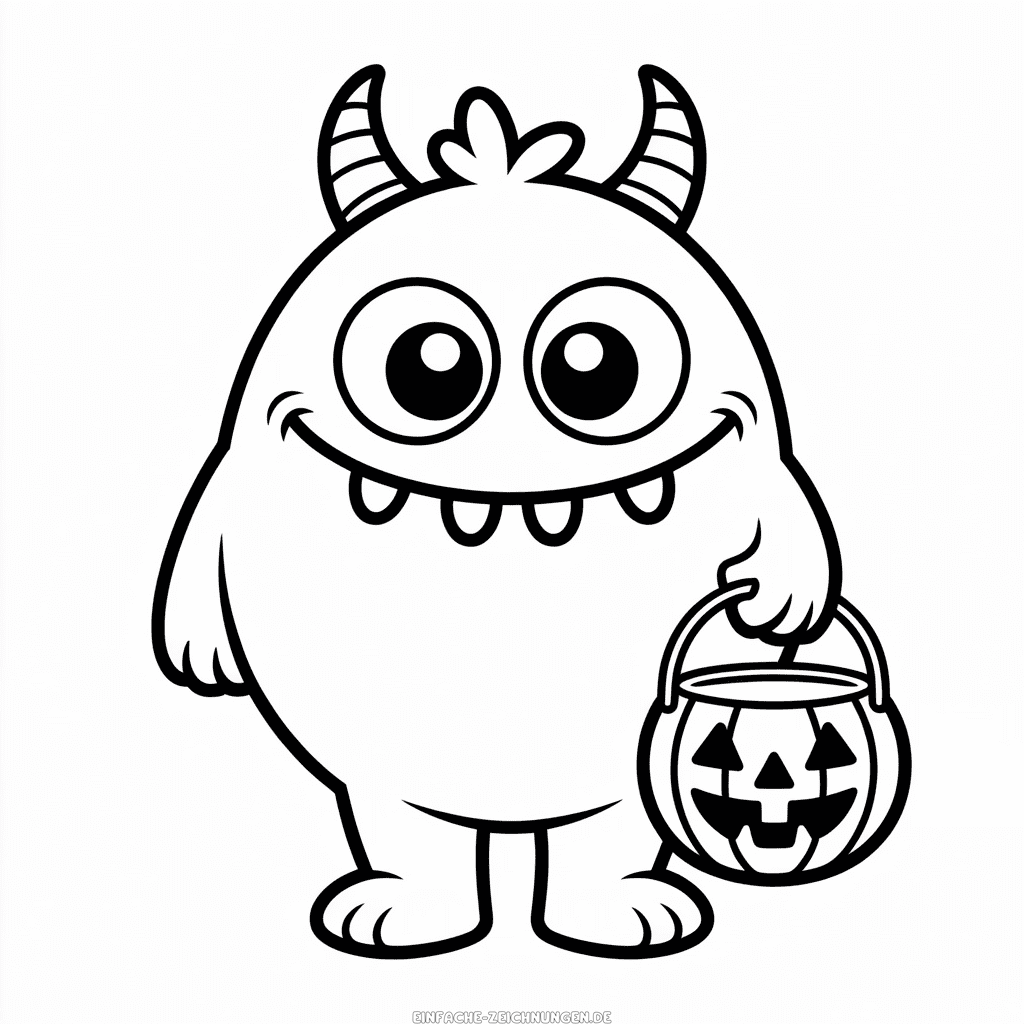Einfache Zeichnung von Niedliches Halloween-Monster kostenlos zum Ausdrucken, ein freundliches Monster mit lustigem Gesicht, das perfekt zur Halloween-Zeit passt. Einfaches Ausmalbild zum Nachzeichnen oder Ausmalen für Kinder. Hochauflösendes Bild, ideal für den schwarz-weißen PDF-Druck im A4-Format.
