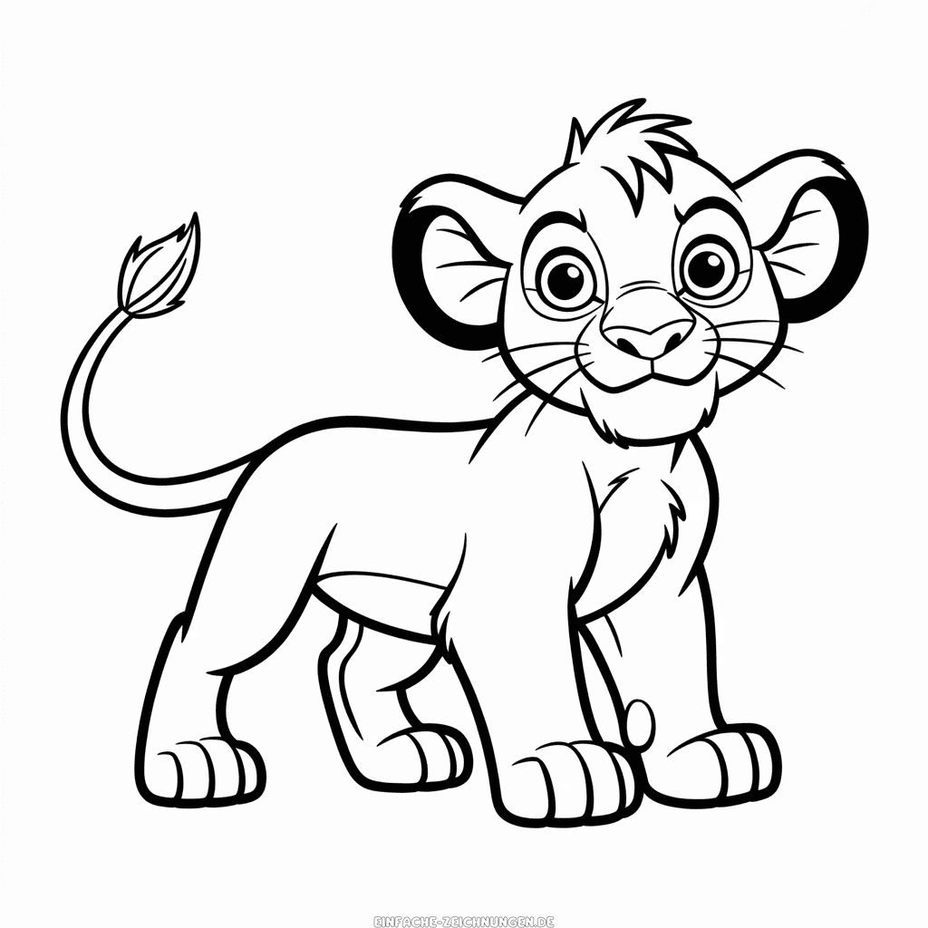 Einfache Zeichnung von Original König der Löwen kostenlos zum Ausdrucken, Simba und seine Freunde laden zum kreativen Malspaß ein. Einfaches Ausmalbild zum Nachzeichnen oder Ausmalen für Kinder. Hochauflösendes Bild, ideal für den schwarz-weißen PDF-Druck im A4-Format.