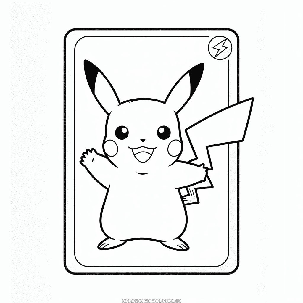 Einfache Zeichnung von Pikachu Pokémon-Karte kostenlos zum Ausdrucken, ein niedliches Motiv für alle Pokémon-Fans und perfekte Vorlage zum Malen und Kreativsein. Einfaches Ausmalbild zum Nachzeichnen oder Ausmalen für Kinder. Hochauflösendes Bild, ideal für den schwarz-weißen PDF-Druck im A4-Format.