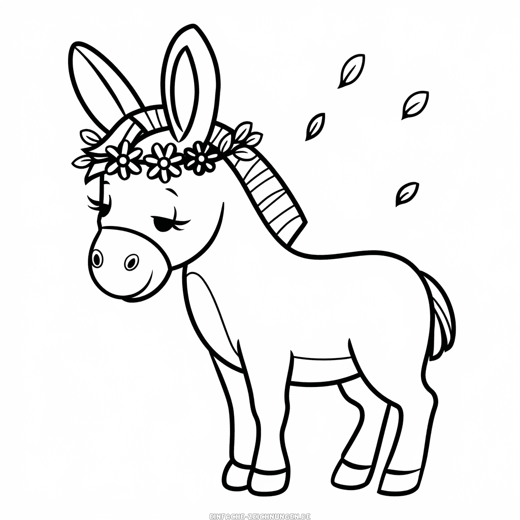 Einfache Zeichnung von Schöner Esel kostenlos zum Ausdrucken, ein liebenswerter Esel, perfekt als Malvorlage für kleine Künstler. Einfaches Ausmalbild zum Nachzeichnen oder Ausmalen für Kinder. Hochauflösendes Bild, ideal für den schwarz-weißen PDF-Druck im A4-Format.